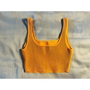Babaton Aritzia Orange Sculpt Knit Square Neck Crop Tank Small