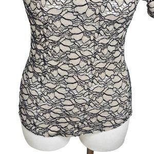 Babaton Aritzia Short Sleeve Knit Floral Embroidered Top Women's Small Tan Black