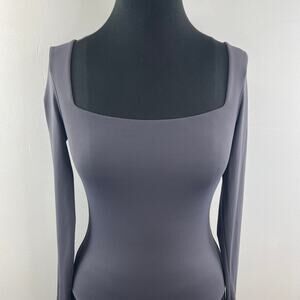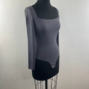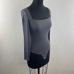 Babaton Aritzia Square Neck Purple Contour Bodysuit Long Sleeve Thong Size S