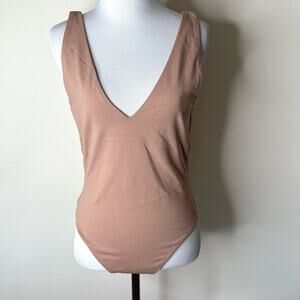 Babaton Aritzia Taupe V-Neck Seamless Bodysuit