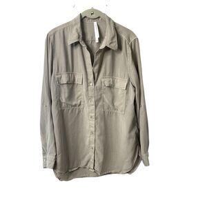 Babaton Aritzia Utility Button Up Shirt Women's Roll Tab Sleeves Pockets Khaki M