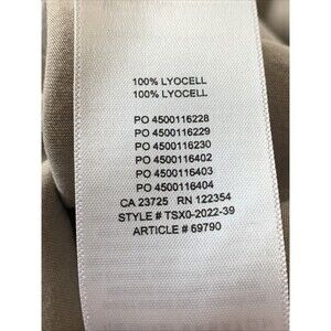 The Babaton Aritzia Utility Button Up Shirt for women features a solid khaki color with long roll tab sleeves, making it a versatile piece for various occasions such as travel, parties, casual outings, workwear, and business meetings. Made of Lyocell material in a woven fabric type, this collared shirt with a button closure offers a regular fit and comes in size Medium. The addition of pockets adds practicality to this basic yet stylish shirt from the Aritzia brand, suitable for all seasons.