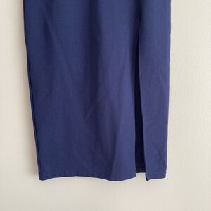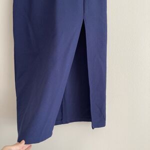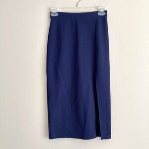 Babaton Aritzia Womens Size 2 Navy Blue Pencil Midi Skirt High Front Slit