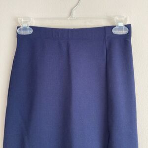 Babaton Aritzia Womens Size 2 Navy Blue Pencil Midi Skirt High Front Slit. Aritzia Babaton skirt. Pull on with elastic waist. Pencil skirt. High slit on left front. Nylon, rayon and spandex fabric blend. Stretchy. Navy blue. Size 2. Measured laying flat: 11.75 inches at waist, 27.5 inches long.