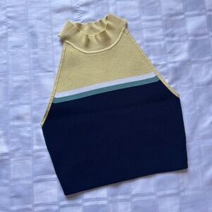 Babaton (Aritzia) Yellow & Blue Mock Neck Sculpt Knit Tank Top
