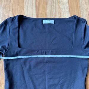 Babaton Black Long Sleeve Square Neck Double Layer Contour Crop Top Size S