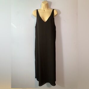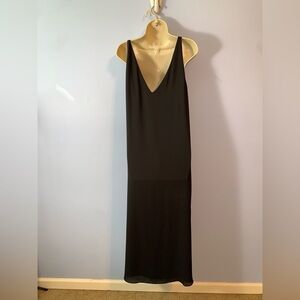 Babaton Black V-Neck Midi Dress size large chiffon side slit