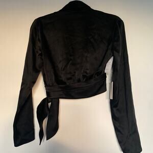 Wrap and go. This is a long-sleeve wrap blouse with a tie at the waist and a deep V-neck.