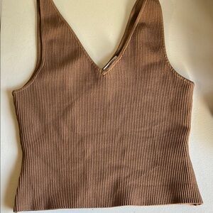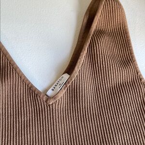 Chic brown ribbed tank top by Babaton. Features a flattering V-neck design. Ideal for layering or wearing alone.
