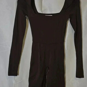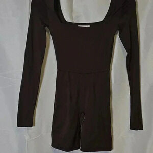 Elevate your wardrobe with this chic Aritzia Babaton Contour Romper. The classic and fitted sleeves paired with a square neckline gives a stylish edge to this extra-slim fit romper. The brown color and nylon and elastane material make it a perfect choice for machine washable garment care.