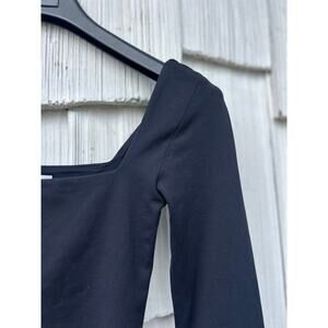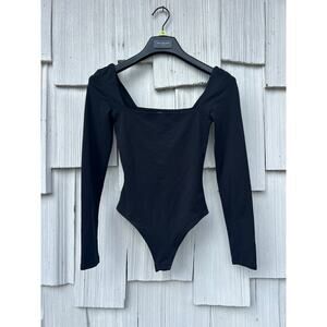 Babaton Contour Square Neck Bodysuit Long Sleeve Black Thong Stretch Size XS