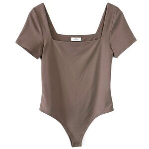 Babaton Contour Squareneck Short Sleeve Bodysuit in Tan Size XL