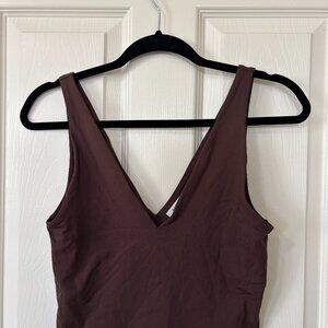 This is a V-neck tank top with double-layer fabric for a supportive fit. It's made with Babaton's signature Contour — luxe, ultra-flattering fabric coveted for its smoothing effect and second-skin feel. Essential for every body.