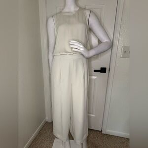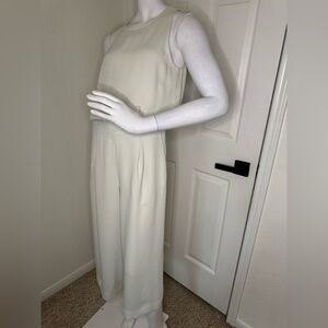 Chic sleeveless jumpsuit in a soft cream color. Perfect for any occasion.