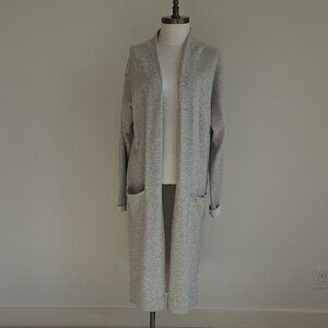 Stay cozy and stylish with this elegant gray open front long cardigan sweater. Perfect for layering, this versatile piece is a must-have for any wardrobe.
