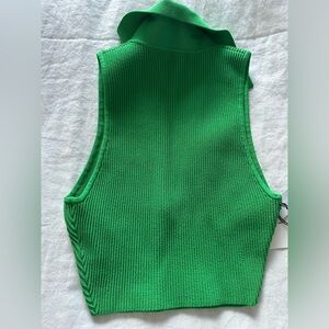 Stylish green ribbed tank top, cropped with collar design.