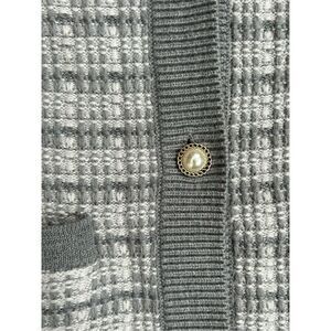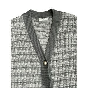Babaton Lacer Cardigan V-Neck Button Front Long Sleeve Checkered Gray Women's XS