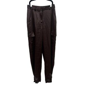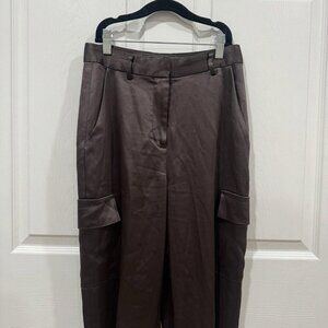 Babaton Pants Womens 2 High Rise Refined Cargo Satin Coffee Brown