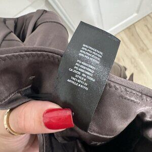 Elevate your casual style with these Babaton pants in a beautiful coffee brown satin fabric. These pants feature a mid-rise waist and ankle belt for a flattering fit. The pull-on closure and elastic waist make them comfortable and easy to wear.