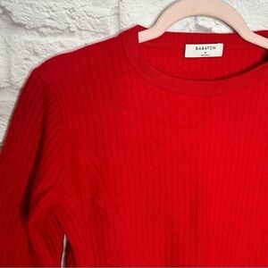 Babaton Red Wool Linen Blend Ribbed Cropped Sweater