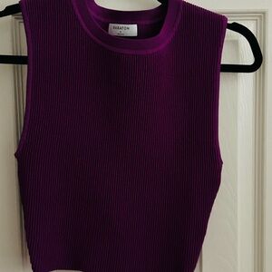 Discover the chic appeal of this Babaton tee, featuring a sleeveless design and a ribbed texture in a striking purple hue.