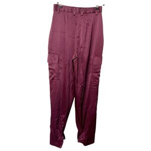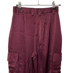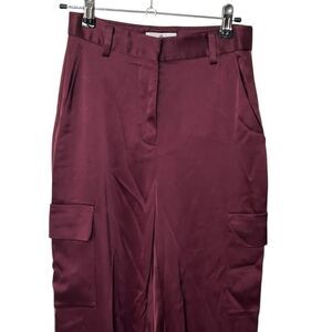 Babaton Satin Cargo Pants Women’s Size 00 Burgundy Utility Trousers Y2K