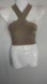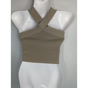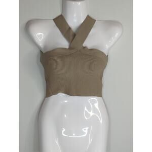 Babaton Saville Tan Sculpt Knit Criss Cross Cropped Tank Womens XS Halter Top