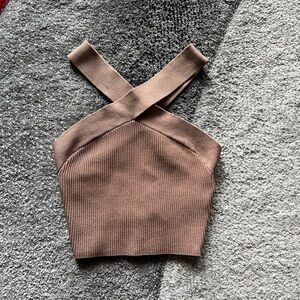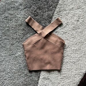 Babaton Sculpt Knit Cris Cross Cropped Tank Top