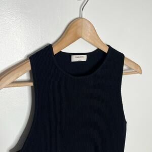 Babaton Sculpt Knit Cropped Tank Top Womens Large Black Ribbed Cropped