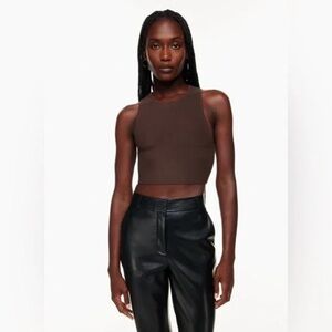 Babaton Sculpt Knit Muscle Tank Ribbed crew-neck tank in brown size XS