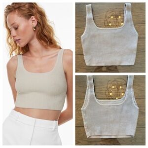 Babaton Sculpt Knit Squareneck Cropped Tank in Pearl 45641