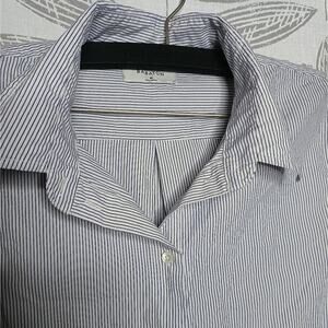 Babaton Shirt Dress Blue Pinstripes Button Neckline Minimalist Old Money Preppy