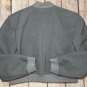Content: 61% polyester, 26% viscose, 7% cotton, 6% elastane; Body Lining: 100% cupro; Sleeve Lining: 100% polyester, Ribbed Trim: 61% viscose, 38% polyester, 1% rubber