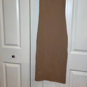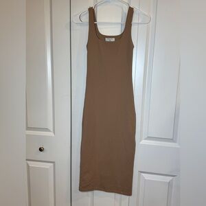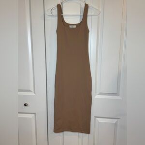 ARITZIA BABATON Chic and versatile tan midi dress. Sleeveless design for effortless style.