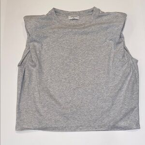 Babaton light grey cap sleeve top with padded shoulders. Great first layer for fall transition. EUC no flaws noted. AR