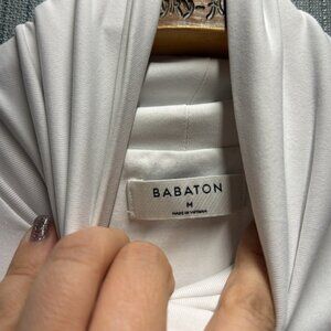Dive into elegance with Babaton's white one-piece swimsuit, featuring a sleek high-cut design and a minimalist silhouette perfect for a chic swim.