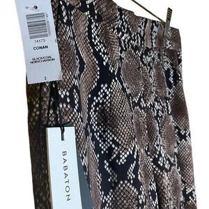 Hey there! I wanted to let you know about these amazing Babaton Women's Brown Snakeskin Conan Mid-Rise Slim Leg Ankle Length Pants in size 2, which are brand new with tags. They are just like the iconic Cohen Pant, but without the pleats. These pants from Babaton are so versatile and really flatter any body shape. The best part is that they are made with Terado™, a Japanese fabric that has a gorgeous matte crepe side and a satin side. And guess what? This version of the Conan comes in a python print that was designed in-house! How cool is that? Originally retailing online at $148, they have completely sold out online. So if you're interested in adding these fabulous pants to your wardrobe, act fast!