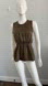 This sleeveless tank top in a rich olive green (looks brown in photos but it’s olive) features a stylish ruched design that adds a touch of elegance. The soft flowy fabric drapes beautifully. It has a cute tie that cinches the waist and ties in the back.