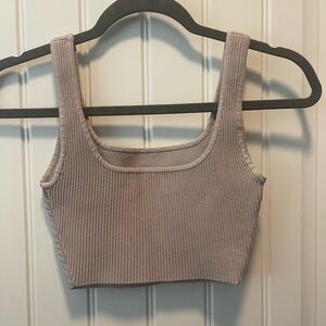 Size 2XS BABATON Crop Ribbed top Taupe color NWOT