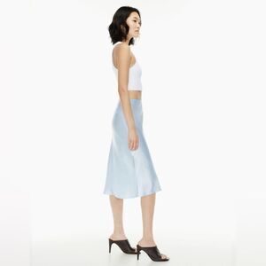 Babaton for Aritzia Women’s Size 16 Light Blue Japanese Satin Slip Midi Skirt