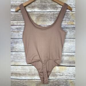 Babaton the Group L tan ribbed stretch one piece bodysuit. Stretchy and comfortable super soft. This is a great bodysuit tour with jeans or skirts.