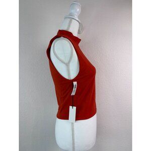 Babaton brand women's size large flambeau red contour mock neck tank top. Brand new with tags. This is listed as a red on Babaton's tag but to me it is more of a burnt orange in person. Double layer material has a great stretch with a fitted look that is comfortable enough for all day wear. Hip length tank with a mock neck.