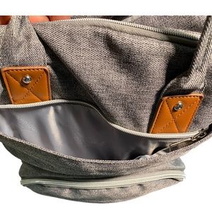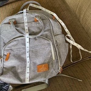 This is a nice backpack diaper bag with adjustable straps. It has plenty of room for packing. It has a back zipper pocket, 4 front zipper pockets, 2 bottle pockets , 2 inside bottle pockets, inside zipper pocket and 3 inside open pockets.