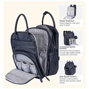 Babbleroo Premium Vegan Leather Diaper Bag midnight blue