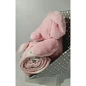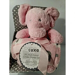 Babe Lux Plush Animal Elephant and Baby Blanket Set Pink and White New.