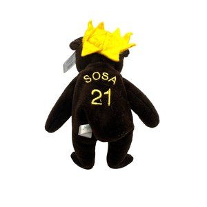 This Babe Ruth Bamm Beanos #21 Sammy Sosa Plush 1998 Bean Bag Baby Bambino Teddy Bear Plush Stuff is a must-have collectible for any sports fan. It features a soft, plush design of the legendary baseball player Sammy Sosa. This teddy bear is perfect for adding a touch of nostalgia to any room, and makes a great gift for any baseball fan.