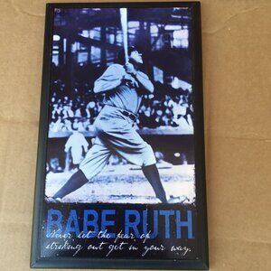 This vintage-inspired wall plaque celebrates the legacy of Babe Ruth, showcasing a striking image of the baseball legend in action. The timeless quote, “Never let the fear of striking out get in your way,” adds a motivational touch, making this piece a meaningful addition to any space.