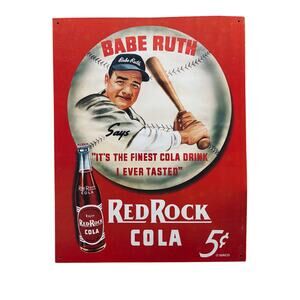 Babe Ruth & Red Rock Cola Single-Sided Tin Sign