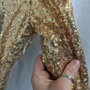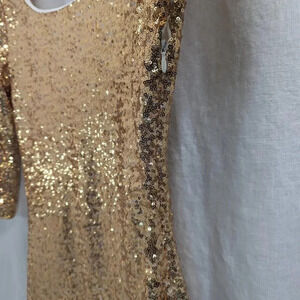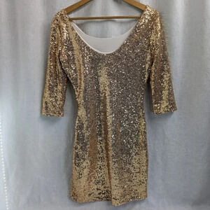 Babe Society gold sequins mini party dress, 3/4 sleeve women's size Medium D5