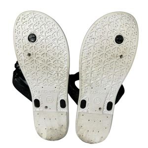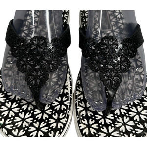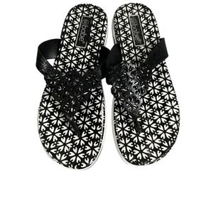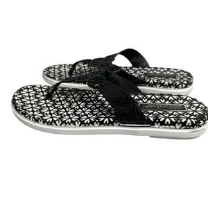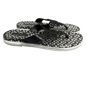Babe Women Thong Flip Flop Size 8 Black White Floral Shoes Vacation Beach
